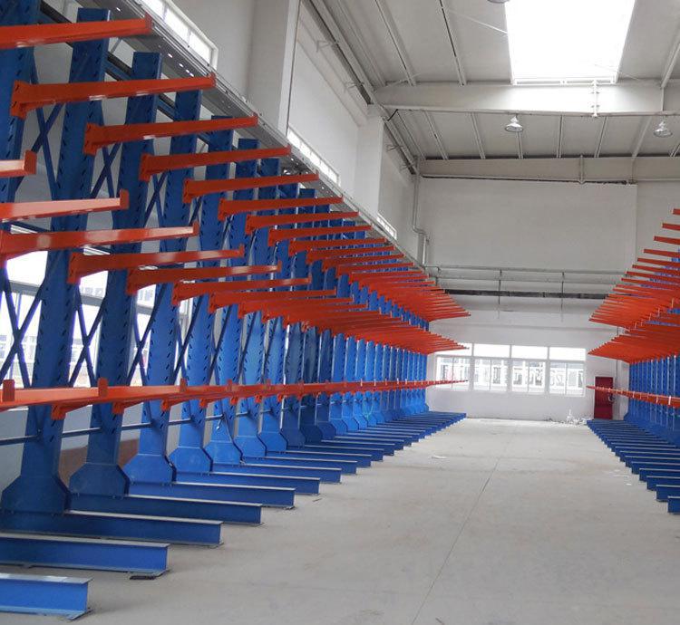 悬臂式货架属于一种特殊材料存取的仓储货架,通常是用来存取长形物料。比如装修用的管材,铝型材、长条板材、线缆等。也可以在悬臂上加装隔板,隔板上再放置货物。 悬臂货架是由连接拉杆、交叉拉杆、悬臂和立柱等材料组成的,立柱多采用钢或冷轧型钢,悬臂采用方管、冷轧型钢,前伸的悬臂可以是单面或双面,具备结构轻、载重能力好等优点。单臂的承重可以达到500公斤,承受到2吨-3吨的重量货物可以选择特别加固的立柱结构。 悬臂货架的柱片与柱片之间使用连接杆连接,连接杆一般是通过矩形管制作的。高度通常在2.5米以下,悬臂长度在1.5米以内,单臂载重通常在1000kg左右。如果货物太重可以在连接杆上加装扁铁背拉,并且会用专用拉子将柱片紧紧固定,这样可以很好的提升货架的安全性能。 悬臂式货架的使用方法:苏州悬臂式货架的层距可以根据货物堆放高度来调节,存取货时需要先存取出上层的货物,再从下层存取。尤其适合仓库高度不高,异形货物摆放。悬臂式货架具备结构稳定,载重能力好、空间利用率高等优点,能大幅度提高库房的利用效率和工作效率。